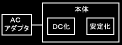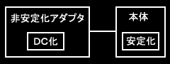 アダプタでAまで行う非安定化電源は本体側でBの動作を行っている。