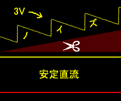 ノイズを取り除き、安定した直流電流を作り、使える状態となる(安定化アダプタ)