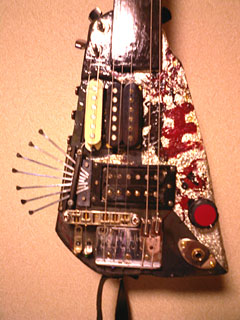 酷い…たった4日で無残にも配線は引きちぎられ、ピックアップも壊され、ボディも削られてしまった。
