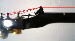 ヘッド側は弦高が低いのでまぁ大丈夫だろうが、ボディ側に来ると弦高が2cmもあるので押さえると弦が切れかねない。