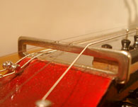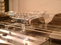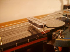 考えられる所には全てピックアップを付けてみる。ブリッジを斜めにする事で、サドル間の音程を作った。