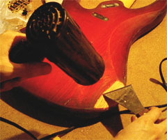 ネックの塗装を剥がす時にドライヤを使うとネックがねじれる可能性があるそうです。