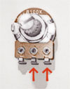 下のツマミが可変抵抗、上のボタンはスイッチになっていて、ボタンを押した時だけ抵抗に繋がるようにしています。