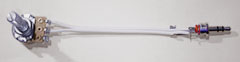プラグのカバーを外すと写真のようになっているので、矢印の部分に可変抵抗を繋ぎます。